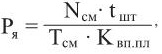 В данном случае Ря – явочное число рабочих в сутки в планируемом периоде, определяется исходя из Ря в смену и количества смен в сутки, Ря в смену – минимальное количество рабочих, необходимое для выполнения планируемого задания по производству продукции за смену. Определяется по участкам, цехам, операциям производственного процесса.