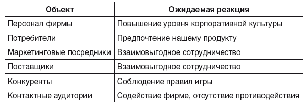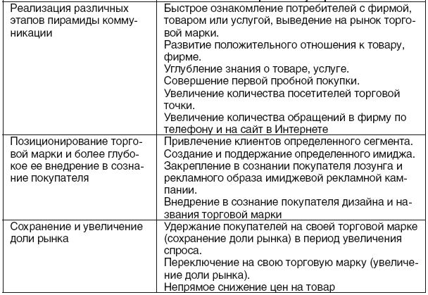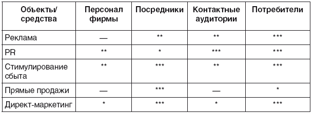 Основные объекты коммуникационной политики представлены в табл. 5.4.