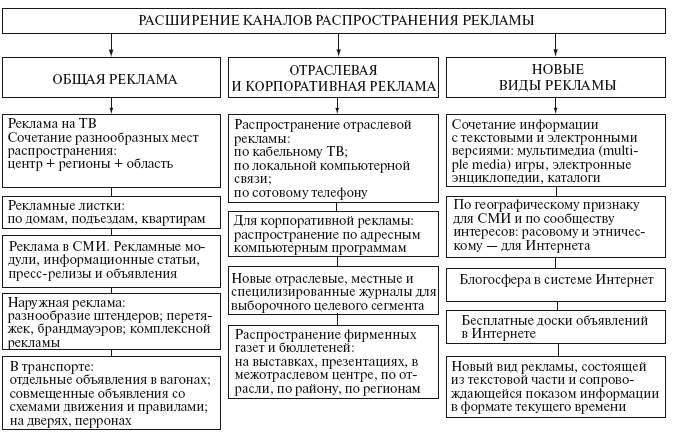 Рис. 5.5. Классификация основных видов рекламы и каналы ее распространения [2 (переработано)]