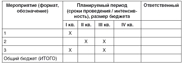 На основании сделанного выбора формируется сводный план мероприятий по продвижению (табл. 5.13).