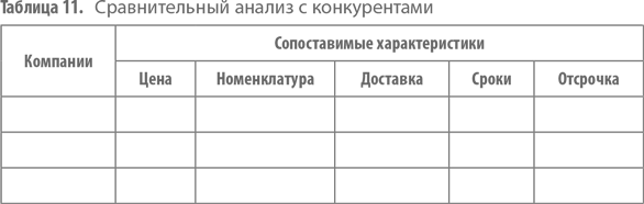 Этот метод дает ответ на вопрос: «Что делать, если потенциальный клиент сравнивает нас с конкурентами?» Для этого нам нужно будет заполнить табл. 11.