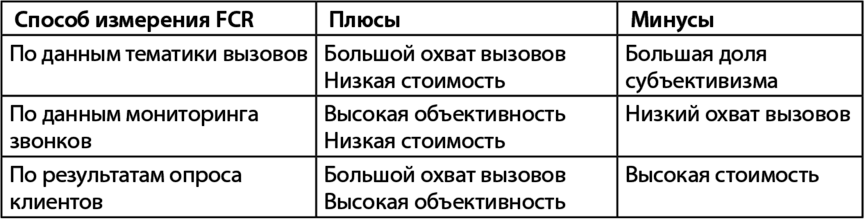 Таблица 5.4. Сравнительный анализ способов измерения First Call Resolution