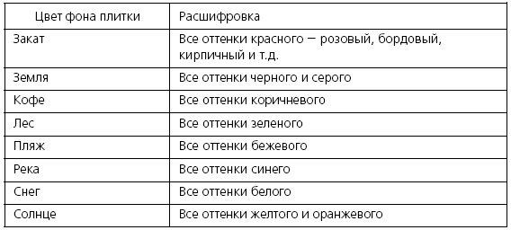 Анализ напольной плитки по цветам представлен в табл. 9.18.