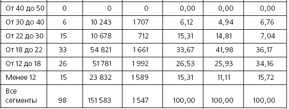 Анализ имеющейся ассортиментной матрицы показал избыток коллекций в сегменте от 18 до 22 руб./кв. м и высокую прибыльность сегмента от 12 до 18 руб./кв. м. Кроме того, перспективным следует признать сегмент свыше 30 руб./кв. м. При розничной цене от 30 руб./кв. м покупателю можно предлагать красивую плитку, которая будет выглядеть дорого. Сегмент от 22 до 30 руб./кв. м неперспективен из-за того, что за такую цену технологически невозможно сделать действительно интересный дизайн, а похожую плитку можно купить дешевле. После более детального анализа можно говорить о том, что сегмент от 18 до 22 руб./кв. м также является перспективным, существуют высокоприбыльные коллекции, но их выбор должен быть более тщательным. (Принципы построения базовой матрицы были изложены в начале этой главы.)