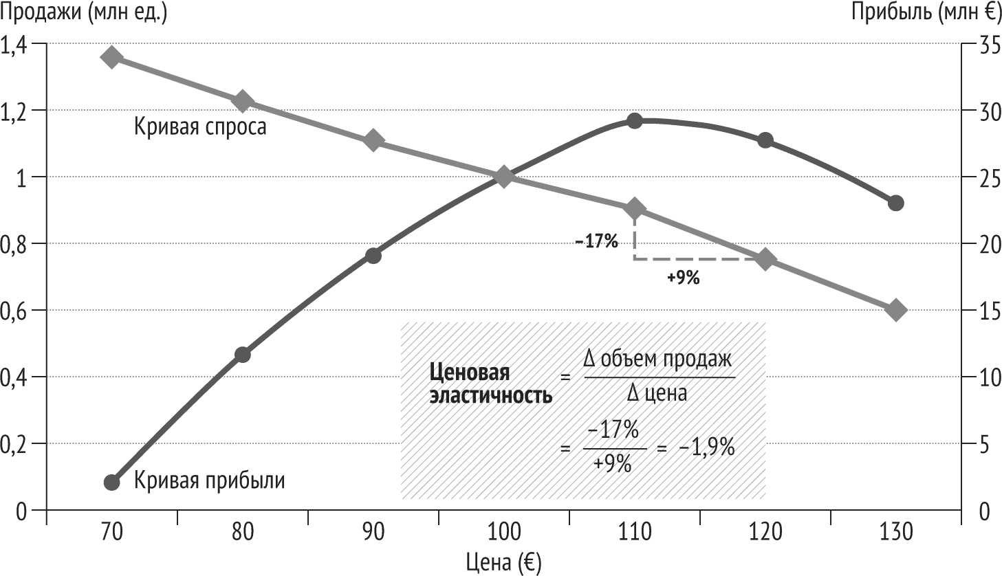 Многие компании считают, что ценовая эластичность – теоретическая концепция. Это не так. Каждый продукт – от «роллс-ройса» до упаковки жевательной резинки – имеет свою кривую ценовой эластичности. Если не определить кривую ценовой эластичности для вашего продукта и не пользоваться ею для расчета цены, вы не сможете выбрать оптимальную цену. Это факт.