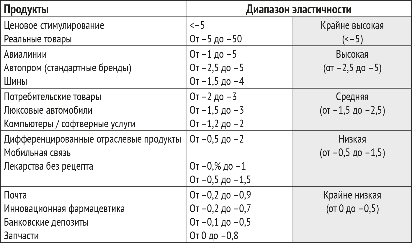 Более того, так как ценовая эластичность значительно варьируется в зависимости от продукта, когда вы выстраиваете кривую, нельзя опираться на общие суждения и средние отраслевые показатели. (Таблица 9 – типичный пример ценовой эластичности из нашего недавнего опыта.) Нужно рассчитать ценовую эластичность именно для вашего продукта – а не для какого-либо другого.
