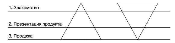 У голландского консультанта Дж. Бома я позаимствовал интересную картинку: два треугольника, обычный и перевернутый, символизируют классический и современный способ продаж (рис. 2.30).
