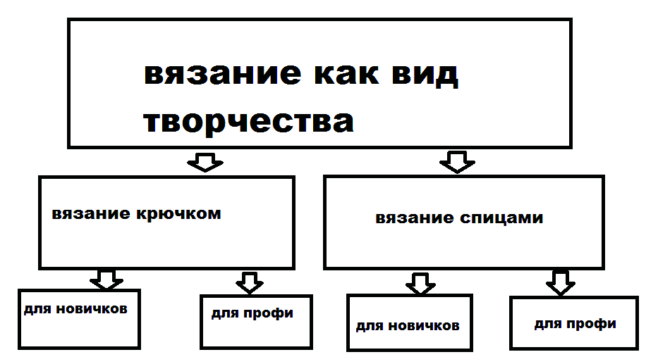 После того, как пользователь сделает второй клик, он попадет один из разделов: это может быть либо вязание крючком, либо вязание спицами (эти разделы будут именоваться вторым вложением, так как их можно будет увидеть после второго клика).