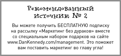 Повторяю, вы должны твердо решить, какой принцип будет управлять вашим бизнесом, вашими работниками, а также поставщиками, которые вас обслуживают. Главный императив бывает только один. Если вы хотите максимальную прибыль, то этим императивом и должна быть максимальная прибыль. А чтобы вычислить принцип, обеспечивающий прибыли, долго ломать голову не придется. Чтобы вам не листать справочники, сообщаю: дело тут в максимально эффективном маркетинге, который привлекает новых клиентов, оптимизирует ценность клиентов и возвращает потерянных клиентов.