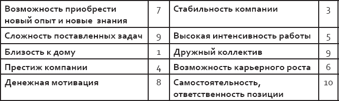 Что можно сказать о соискателе, который подобным образом расставил приоритеты?
