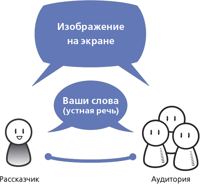 Самое сложное в презентации – сочетать устный и письменный рассказ. Нужно выступать перед реальной аудиторией. Составляющие презентации – рассказчик (вы), аудитория, материал (ваши слова), а также письменные и визуальные элементы (изображение на экране, например слайды PowerPoint).