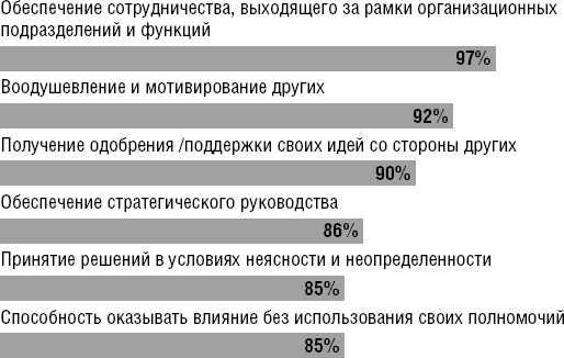 До текущего момента Джейкоб действовал успешно, более того, выполнение подобных обязанностей типично для многих менеджеров, находящихся на таком же этапе развития карьеры. На ранних стадиях мы всегда действуем в области своей специализации. Работой других мы также обычно управляем в рамках тех функциональных или технических сфер, в которых являемся специалистами. Однако картина полностью меняется, когда мы начинаем играть более серьезную руководящую роль. Когда я в рамках опроса выясняла у его участников, какие компетенции являются самыми важными для их лидерской эффективности, они перечислили именно те, которые требовали значительного выхода за рамки их привычной специализации (рис. 1–4). Но неудивительно и то, что 57 процентов тех же менеджеров на утверждение «Вопросы, связанные с повседневной деятельностью, отнимают у меня слишком много времени» ответили: «Верно в некоторой степени или полностью».