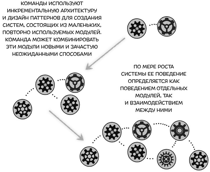Когда модули взаимодействуют простым способом, система может расти инкрементально