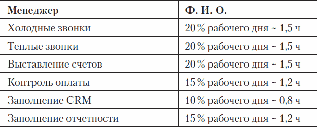 Таблица 2.1. Фотография рабочего дня менеджера по продажам