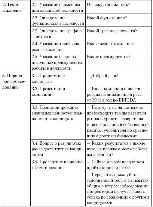 Шаг 1: указание на подчиненность. Кандидат должен четко понимать, кто является его непосредственным руководителем, перед которым он отвечает. Я был неоднократным свидетелем того, как классные кандидаты уходили от принятия предложения вопреки ожиданиям работодателя, потому что им была непонятна личная подотчетность. Компетентные люди не идут работать в качестве слуги двух господ, например генерального директора и вице-президента по финансам. Невозможно быть эффективным, выполняя противоположные поручения двух боссов. Если вы не определились со структурой и личной подотчетностью – никакой кандидат не захочет быть заложником отсутствия предметных договоренностей, тем более если он это «уже проходил».