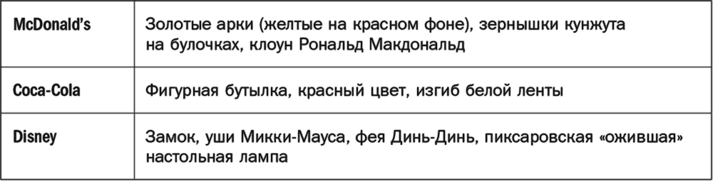 В-третьих, значимые активы бренда очень важны, поскольку наглядные воспоминания создают условия, при которых бренд легко заметить. Мы способны увидеть бренд, поскольку распознаем его инфографику. Учитывая, что даже в магазине, прохаживаясь и выбирая, что купить, не замечаем большинства выставленных товаров. Заметным для нас бренд делают именно его значимые активы (табл. 12.5).