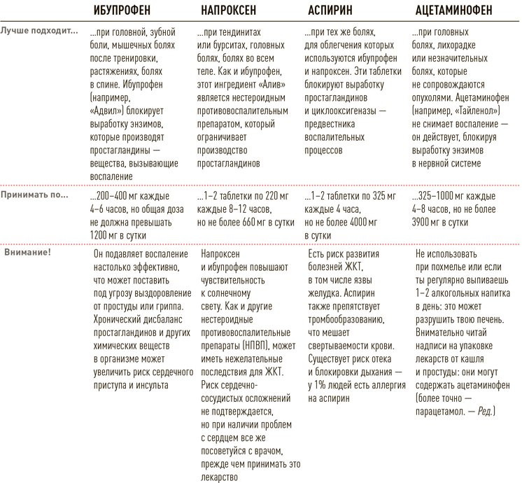 Памятка по болеутоляющим средствам, которые продаются без рецептов