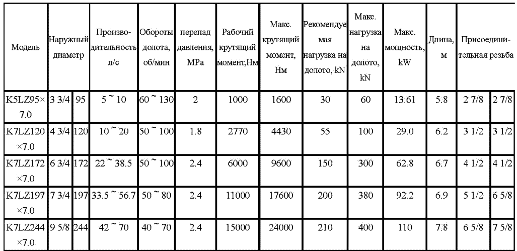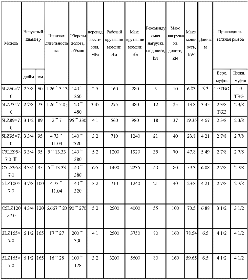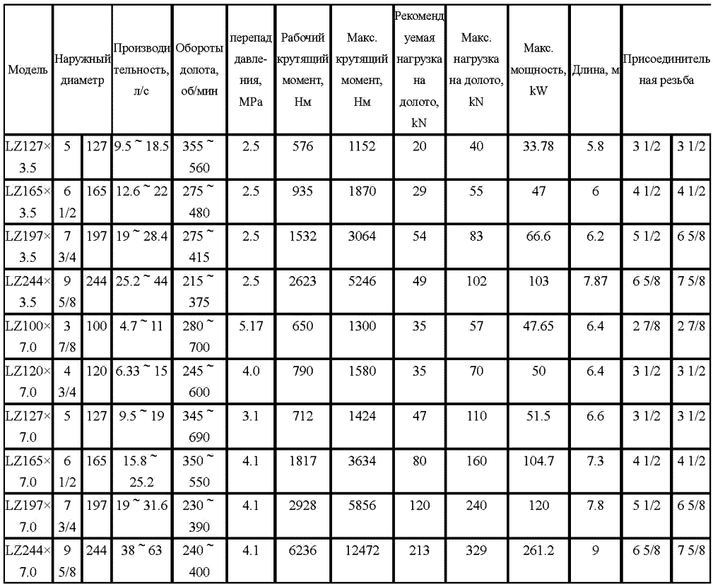 Технические параметры винтового забойного двигателя (воздушный мотор или пеномотор)