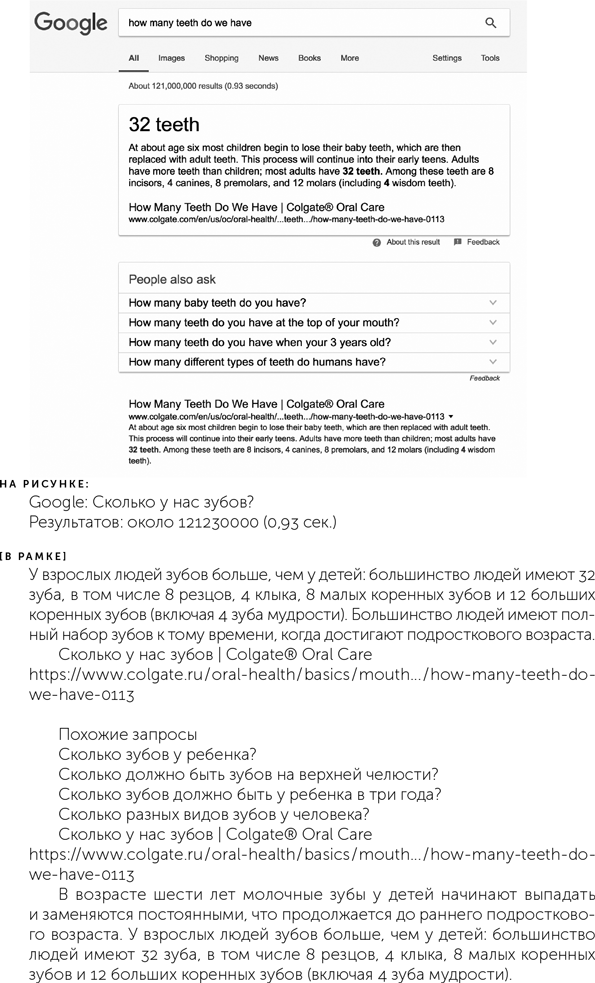 Как компания сумела сделать свой сайт одним из самых надежных источников стоматологической информации? Во-первых, маркетологи Colgate отслеживают, какие темы больше всего интересуют интернет-пользователей, и создают соответствующий контент. Они оптимизируют каждую публикацию, чтобы та получала максимально высокие рейтинги в алгоритмах поисковых систем и попадала в первые строки результатов поиска{7}. Таким образом, когда пользователь делает поисковый запрос, связанный со стоматологической информацией, в первой же строке он получает ответ от Colgate.com — и чаще всего на этом заканчивает поиск. Colgate.com из месяца в месяц расширяет свою аудиторию пользователей и выстраивает с ними прочные, долговременные отношения.