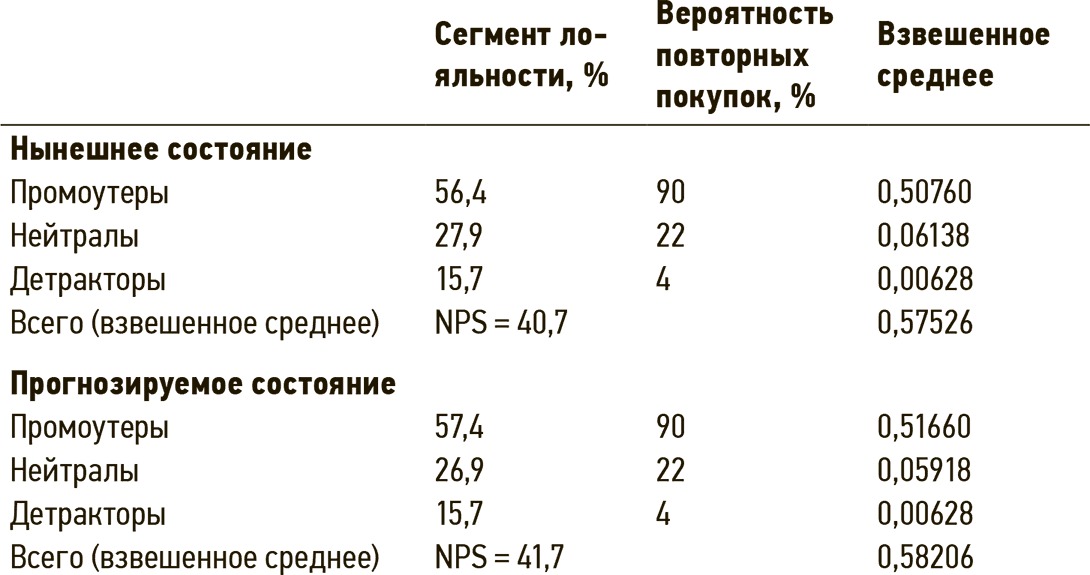Таблица 2.2. Результат перемещения 1 процента пассивных клиентов в сегмент промоутеров