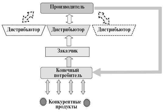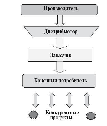 Стратегия «вталкивания» — концентрация маркетинговых усилий на посреднике с целью добиться от него добровольного сотрудничества через предложение посреднику привлекательных условий (рис. 5.1).