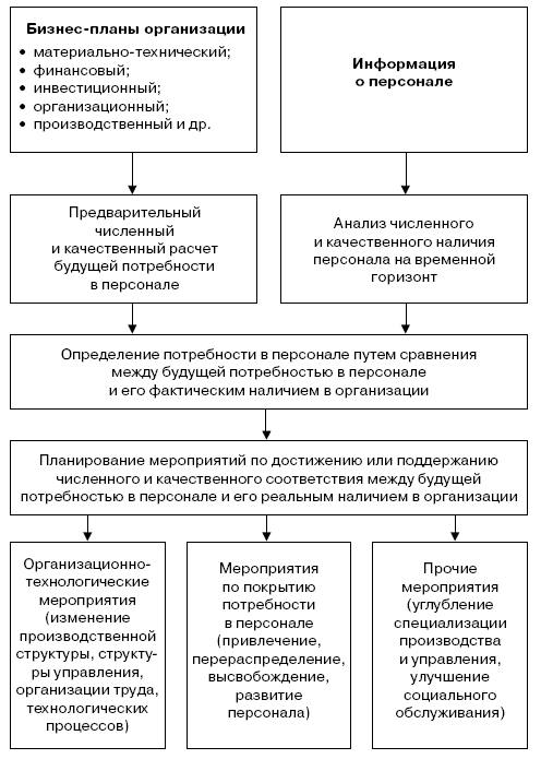 Общая схема планирования потребностей организации в человеческих ресурсах состоит из нескольких этапов (рис. 3.2), которые должны стать на практике ответами на следующие вопросы.