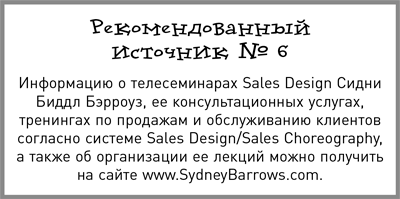 Сегодня на нас потоками льются бредни, будто продавцам нужно предоставлять свободу, чтобы сохранялась непосредственность, чтобы они творчески подходили к делу, и т. д. и т. п. Все это чушь собачья. Продажи – это научный и механистический процесс, его не сымпровизируешь на ходу. Мы с Томом Хопкинсом, человеком, которого многие признают лучшим тренером по продажам во всей Америке, горой стоим за использование строгих сценариев. Как автор-копирайтер, которому платят не меньше 50 000 долларов (плюс проценты) за текст, будь то рекламное объявление, письмо или веб-страница, я могу вас уверить, что для рекламы очень важен выбор слов, т. е. язык. Мои тексты – это «продажи на бумаге». Если выбор слов важен там, то и в «живых продажах» он имеет не меньшее значение. Однако если продавец работает живьем, то важны не только выбранные, упорядоченные и произнесенные слова, но и внешность говорящего, его одежда, пластика и язык тела, обстановка магазина, перемещения потенциального покупателя с места на место, сидит он или стоит, какой видит «реквизит», и многое другое. С моей коллегой Сидни Биддл Бэрроуз мы называем это хореографией продаж. И считаем, что срежиссировано должно быть все, с самого первого шага, который делает потенциальный покупатель: движение за движением, минута за минутой, реплика за репликой. Конечно, этой идее многие сопротивляются, ведь она требует от продавцов и всех задействованных сотрудников изрядной работы ума, твердой дисциплины и практики, а от управленцев – неусыпного и активного контроля. Могу вас заверить, что те немногие, кто применяет эту систему, получают колоссальную отдачу.