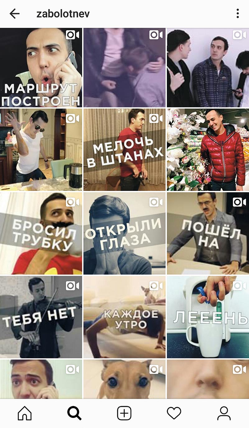 Но при этом мы видим абсолютно телевизионный формат, суперкачественную картинку, слышим телевизионное озвучивание, видим телезаставку. Но мы говорим об Instagram! Если мы включим этот ролик еще раз и посчитаем, то бо?льшую его часть составляют какие-то постановочные длинные кадры, в Instagram это не нужно. Общие планы, долгие переходы, очень плохой монтаж и вдобавок некачественный юмор. Люди решили, что возможен телевизионный подход. Не сработало! Все, что происходит в Instagram, – абсолютно новый формат, и относиться к нему нужно совершенно по-новому. Возможно, даже сделать тяп-ляп, это не стандартное ведение кинопроизводства, в школе по кинопроизводству такому не научат! Это и есть самый главный косяк. Чем больше вы заморачиваетесь и вкладываетесь, тем больше шансов, что все зря. Вы должны создавать свой, новый формат, а не брать под копирку то, что можно увидеть в любых скетч-шоу – таких как «6 кадров» и подобных.